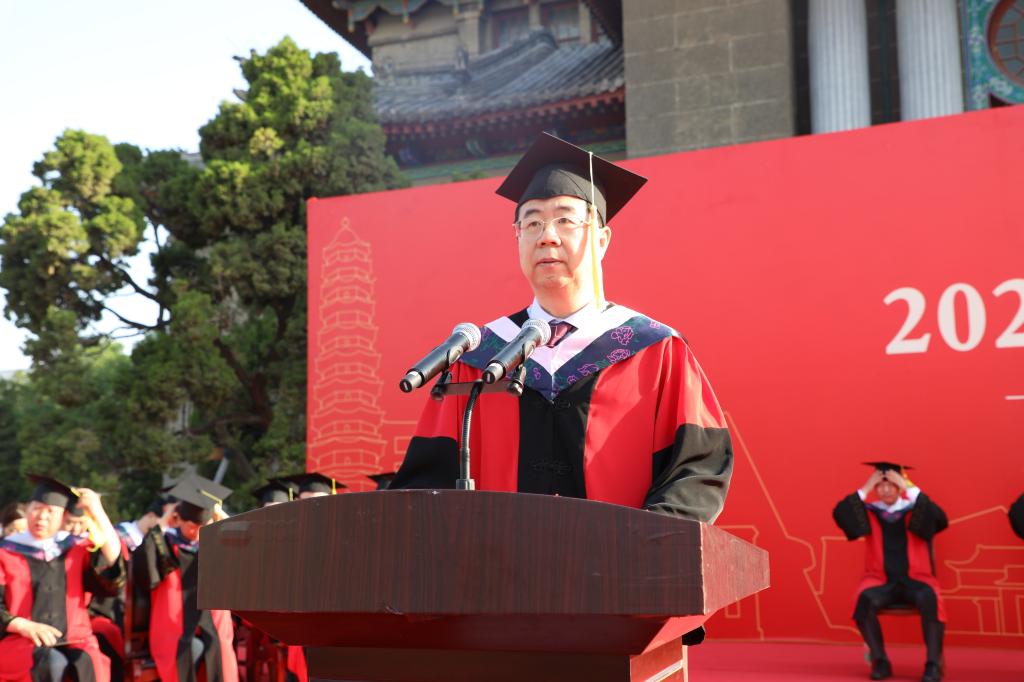 “感谢你们把自己最美好的青春年华镌刻进百年名校的历史,感谢你们为历久弥新的河大精神添加了鲜活的注脚,感谢你们为厚重深沉的河大文化赋予了年轻的内涵。”“未来发展中,河大的自信,不在别处,就在你们坚定前行的步伐里;河大的担当,不在别处,就在你们爱国报国的奉献里;河大的荣光,不在别处,就在你们成长进步的捷报里!你们是母校最美好的回忆,也会是母校最靓丽的风景!”卢克平娓娓道来的谆谆话语如春风化雨般洒落进毕业学子的心田,为同学们走好未来人生路指明了方向。