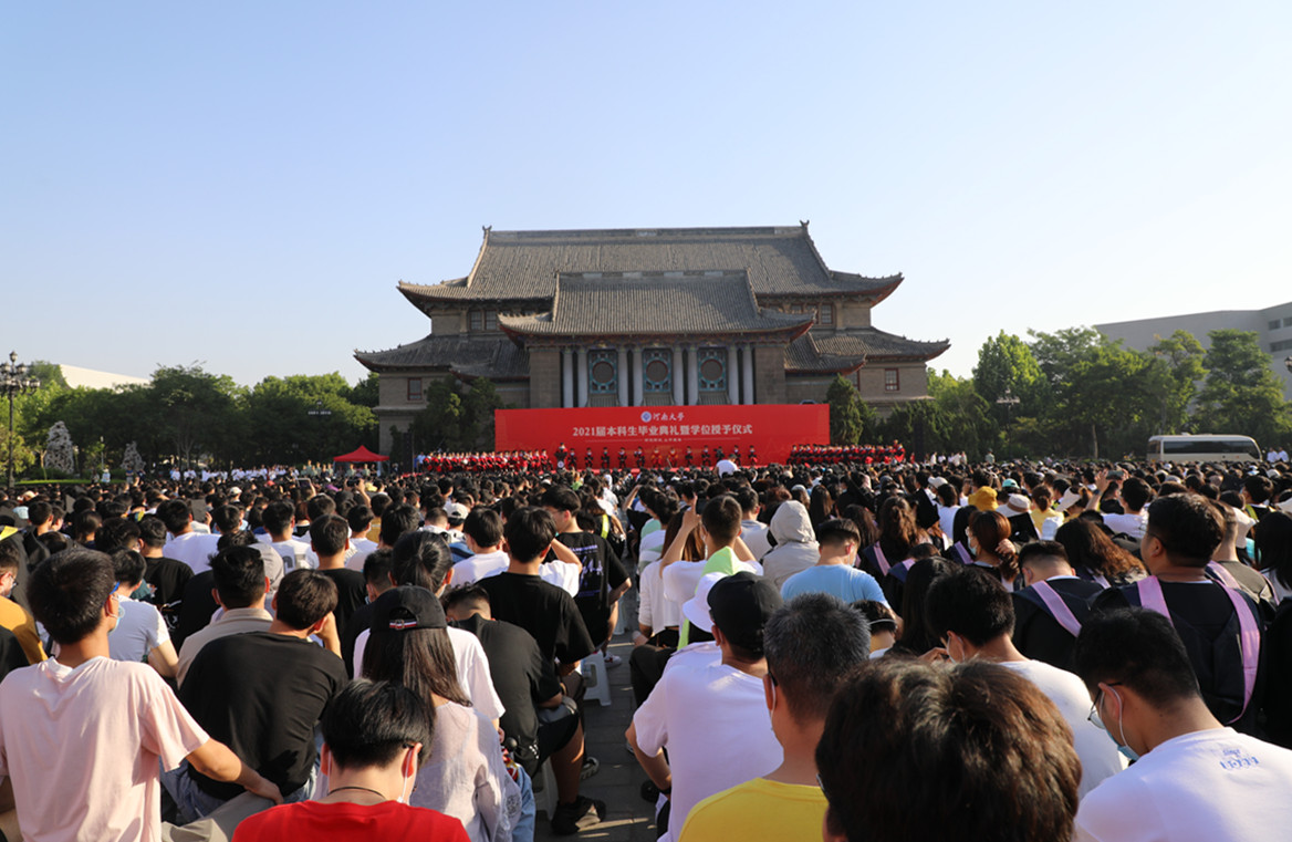 “嵩岳苍苍,河水泱泱,中原文化悠且长……”当熟悉的校歌再一次响起,毕业学子们对母校的万千情感又一次在心中激荡。典礼结束,旭日渐升,热烈的阳光洒满古朴庄重的大礼堂,也照向青年学子们更加广阔的人生未来路。